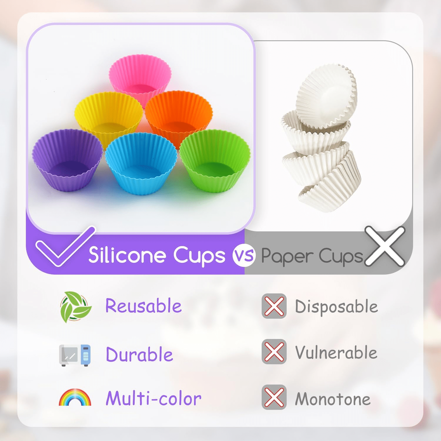 Featuring a non-stick process, these silicone baking cups require no cooking spray and are easy to clean, leaving you more time to enjoy delicious desserts!