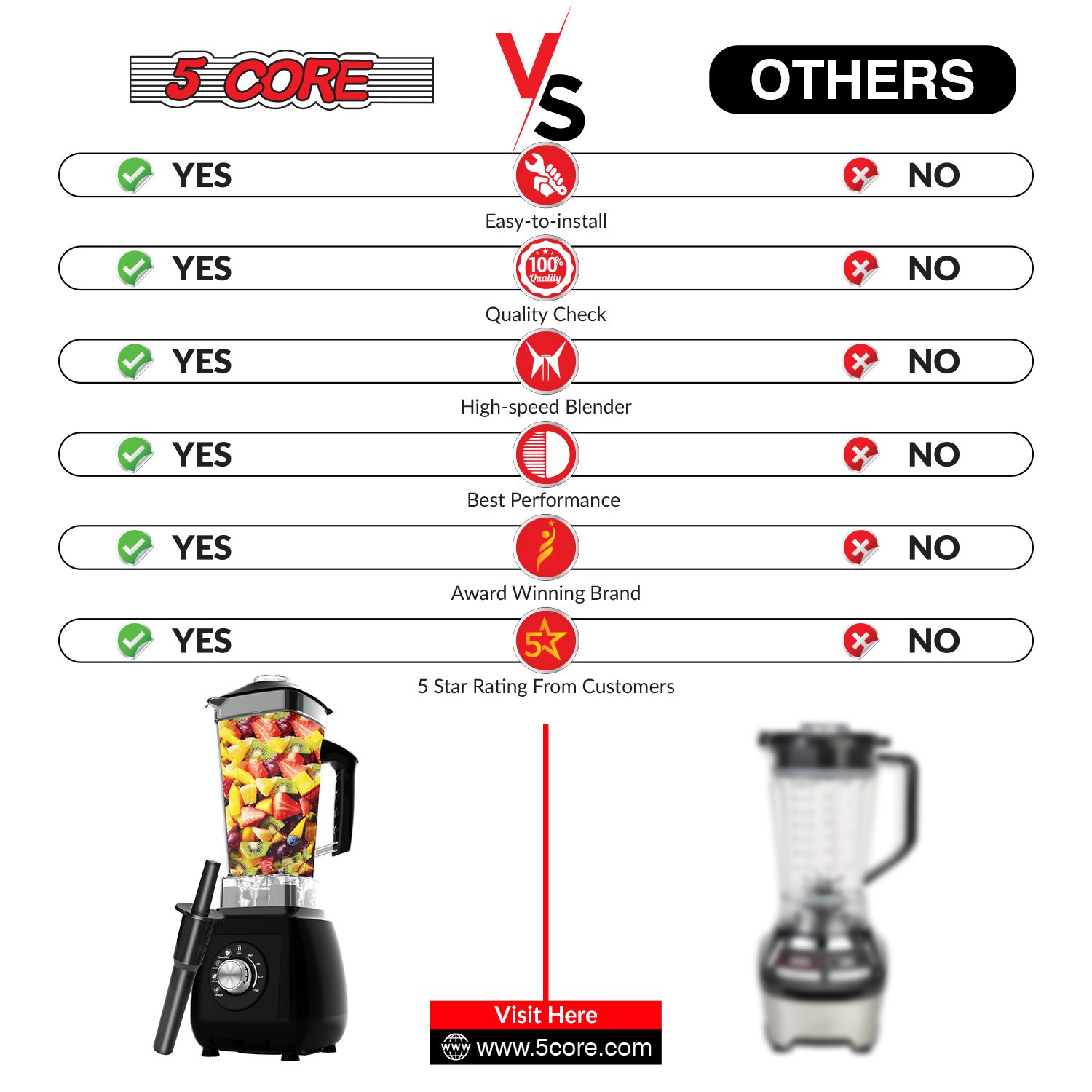 2.Ultra-smooth results: Achieve ultra-smooth results with the 5 Core electric kitchen blender. Its blades are specifically designed to continuously force ingredients down and circulate them around the jar, effectively crushing even the toughest foods.