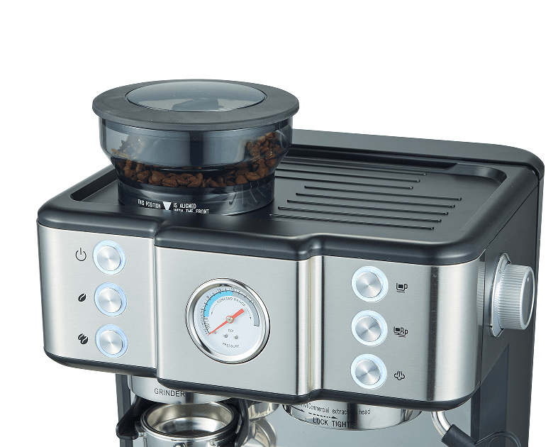 SKU: PSCM7000 Coffee Grinder. 15Bar, French Drip / Latte and other Italy espresso extraction, 1 cup/2 cup mechanical button + meter number, 2300W, steam type, powder hammer 58mm, 30 levels of grind setting