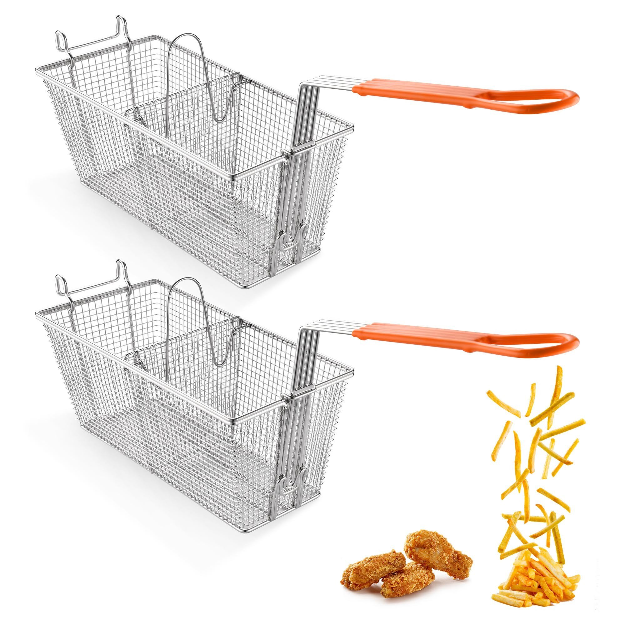 - Large Capacity - This Set of 2 pcs Deep Fryer Baskets, each featuring a large size of 13" x 6 5/16" x 5 7/8" for holding up to 4.4 Lbs French fries, perfect for storing all your foods in one place, helping you to avoid repetitive fishing around or over-frying of individual food, ideal for both commercial and home use