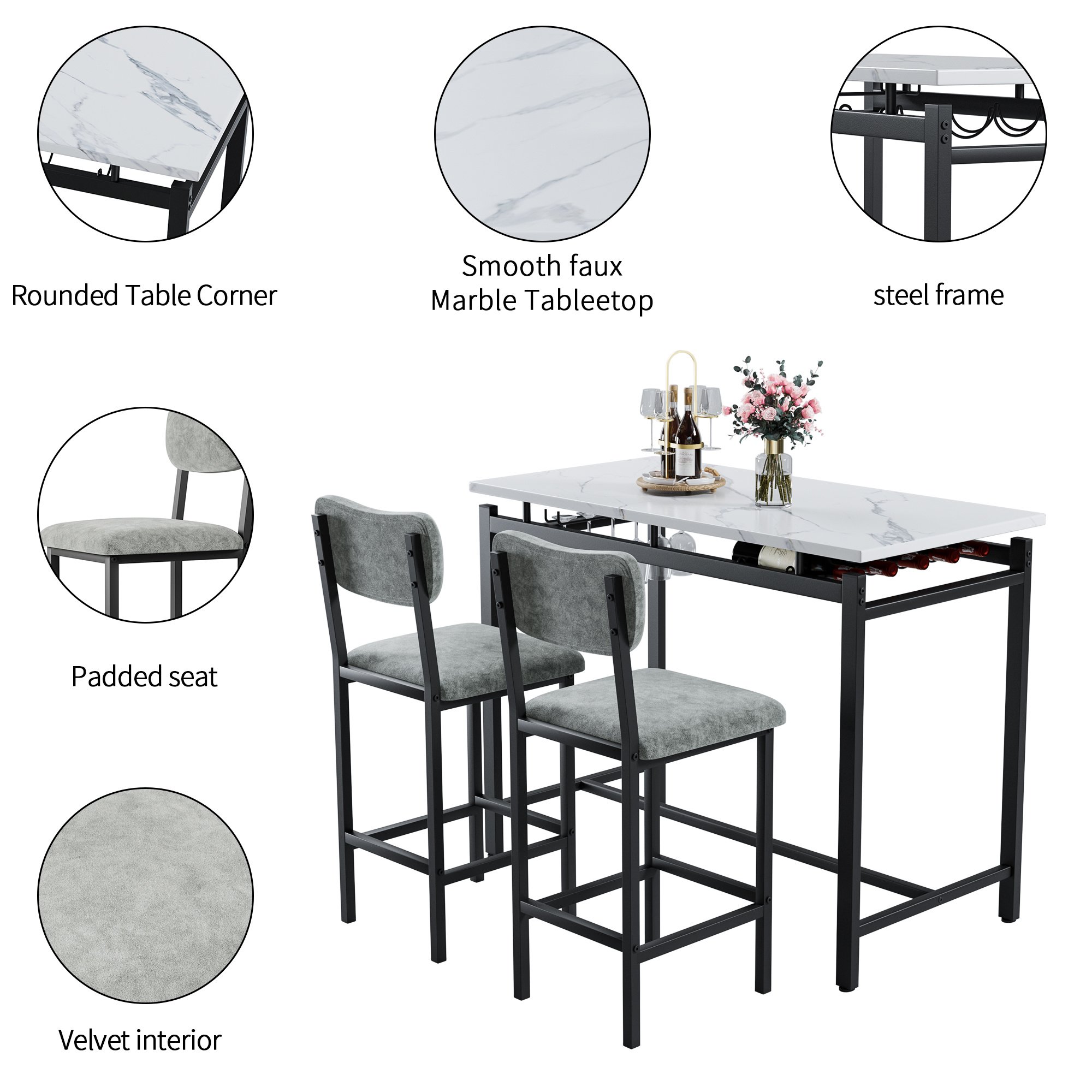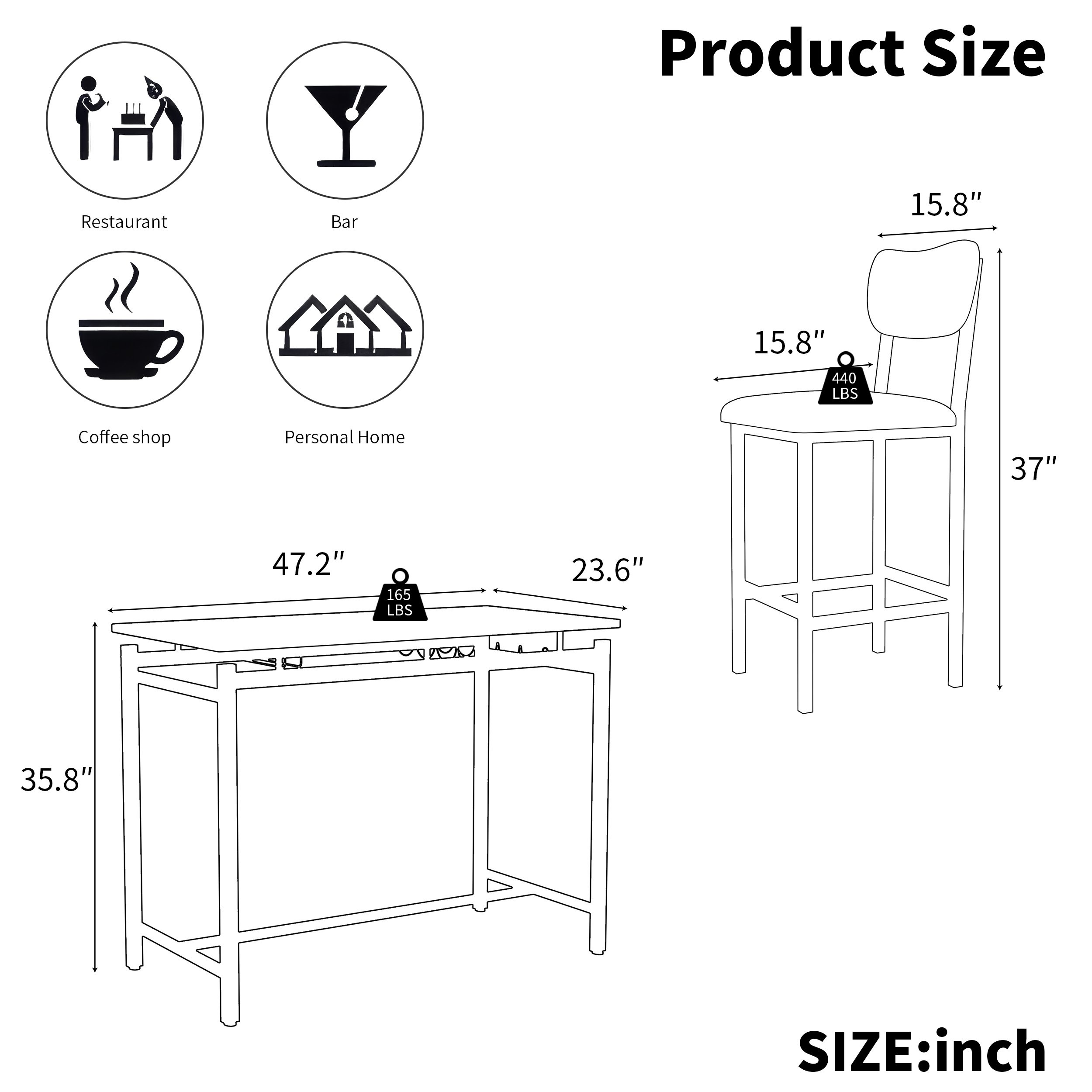 2.SPACE-SAVING COMPACT DESIGN: 2 high dining chairs can be hidden under the bar kitchen table to save space and create a tidy atmosphere. It is an excellent solution for small spaces, such as condos, kitchens, studios, pubs, or apartments.