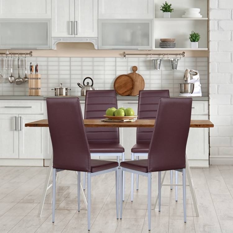 Set of 4 Modern High Back Brown PVC Leather Dining Chairs with Metal Legs Set of 4 Modern High Back Brown PVC Leather Dining Chairs with Metal Legs Set of 4 Modern High Back Brown PVC Leather Dining Chairs with Metal Legs Set of 4 Modern High Back Brown PVC Leather Dining Chairs with Metal Legs Set of 4 Modern High Back Brown PVC Leather Dining Chairs with Metal Legs