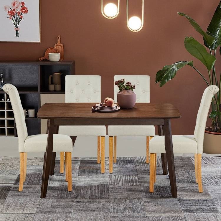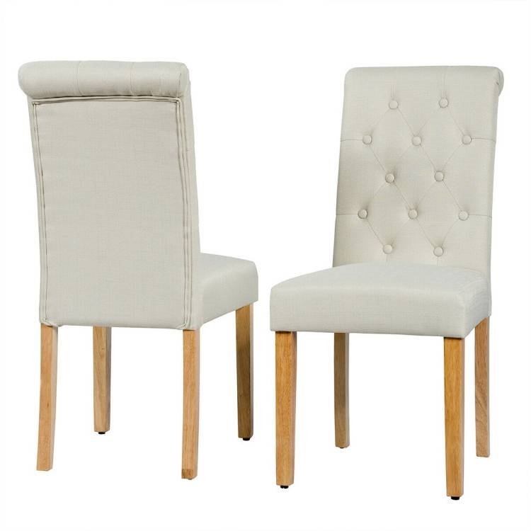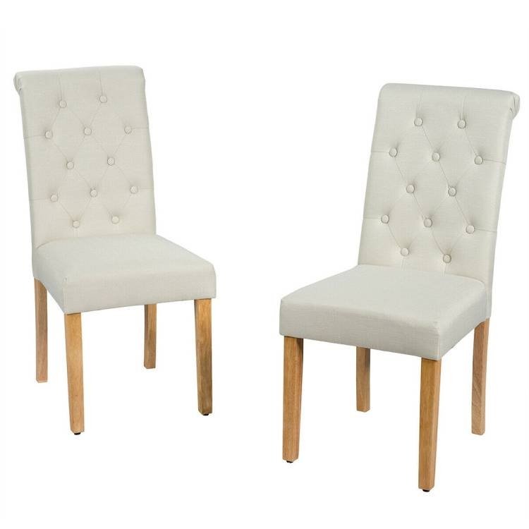 These chairs are the key to perfectly complementing your dining table so you can enjoy every meal with great comfort. This Set of 2 Beige Linen Button Tufted Dining Chair with Wood Legs features an extra comfy cushioning that will help you to relax and enjoy meals or just relaxing. The linen fabric not only provides superior breathability, but also expand life span with great durability. Their high, curved backrest are designed to relieve back fatigue and provide extra support. The sturdy wood, solid construction, and adjustable foot pads result in an overall stable structure that remains secure and does not wobble. No need to worry about assembly as the simple assembly instructions will have these chairs set up in no time. If you are looking for such dining chair, why not try?