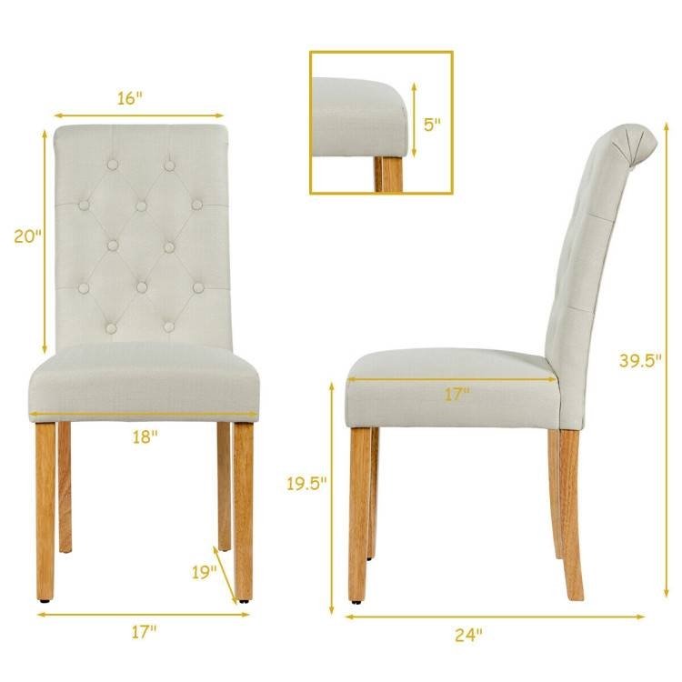 Home > Set of 2 Beige Linen Button Tufted Dining Chair with Wood Legs